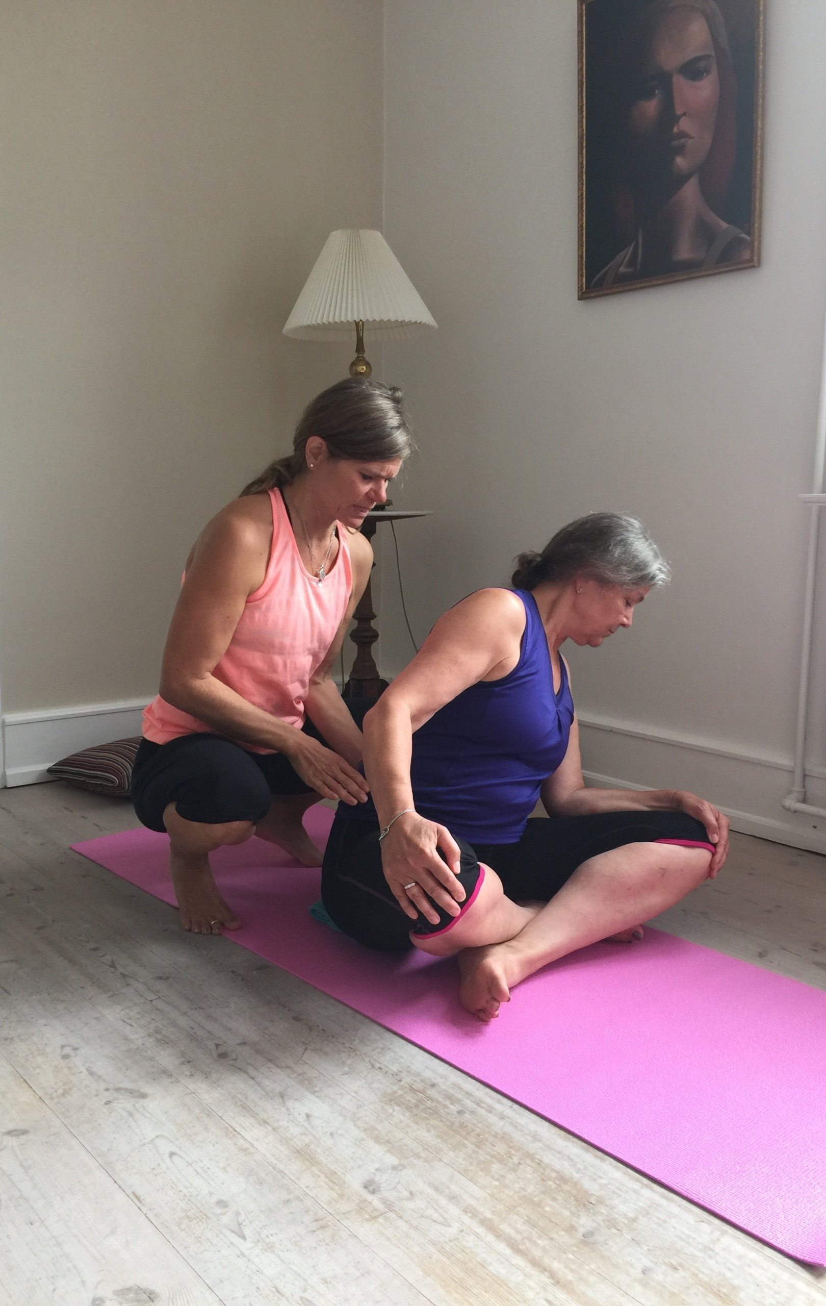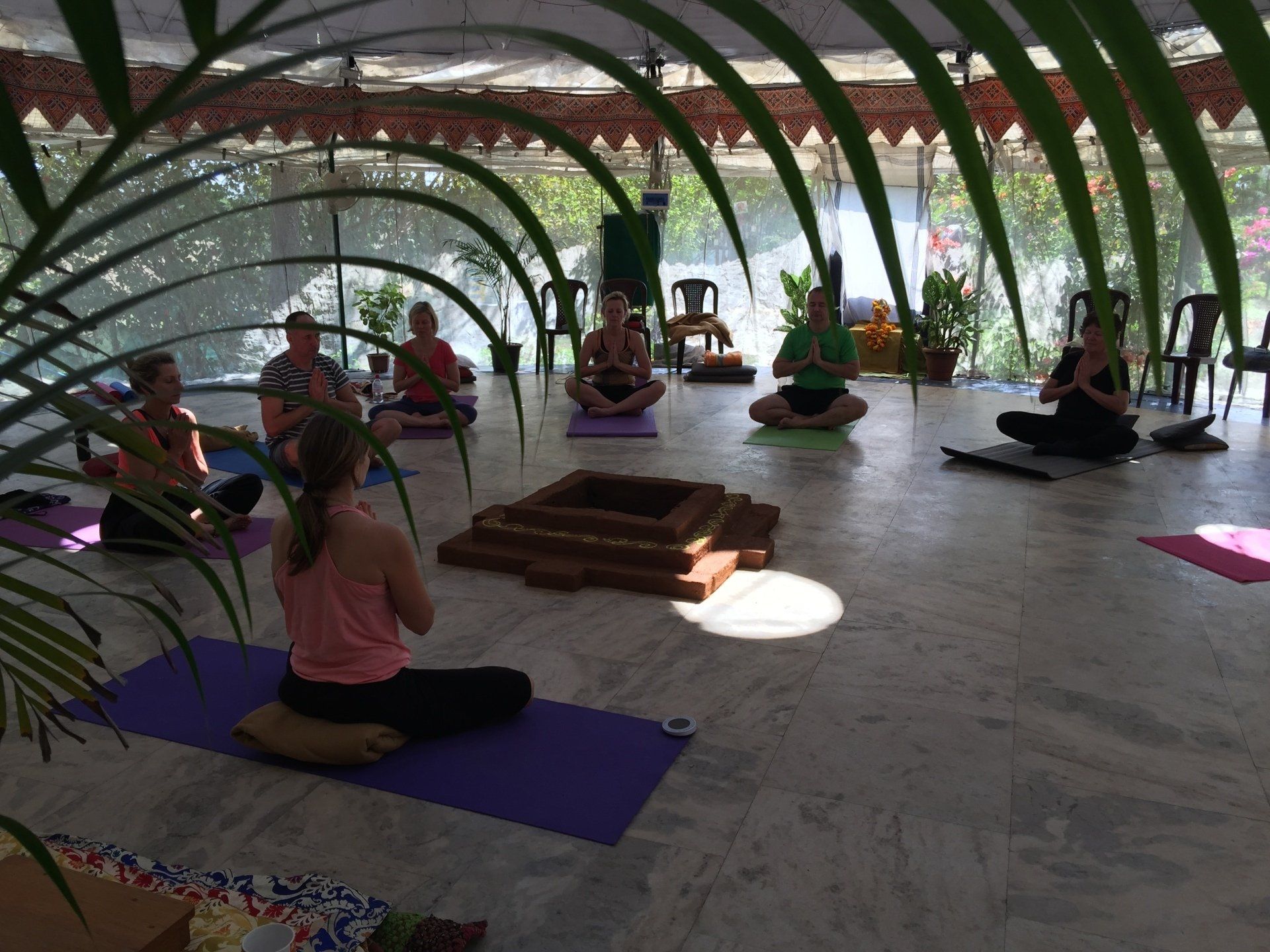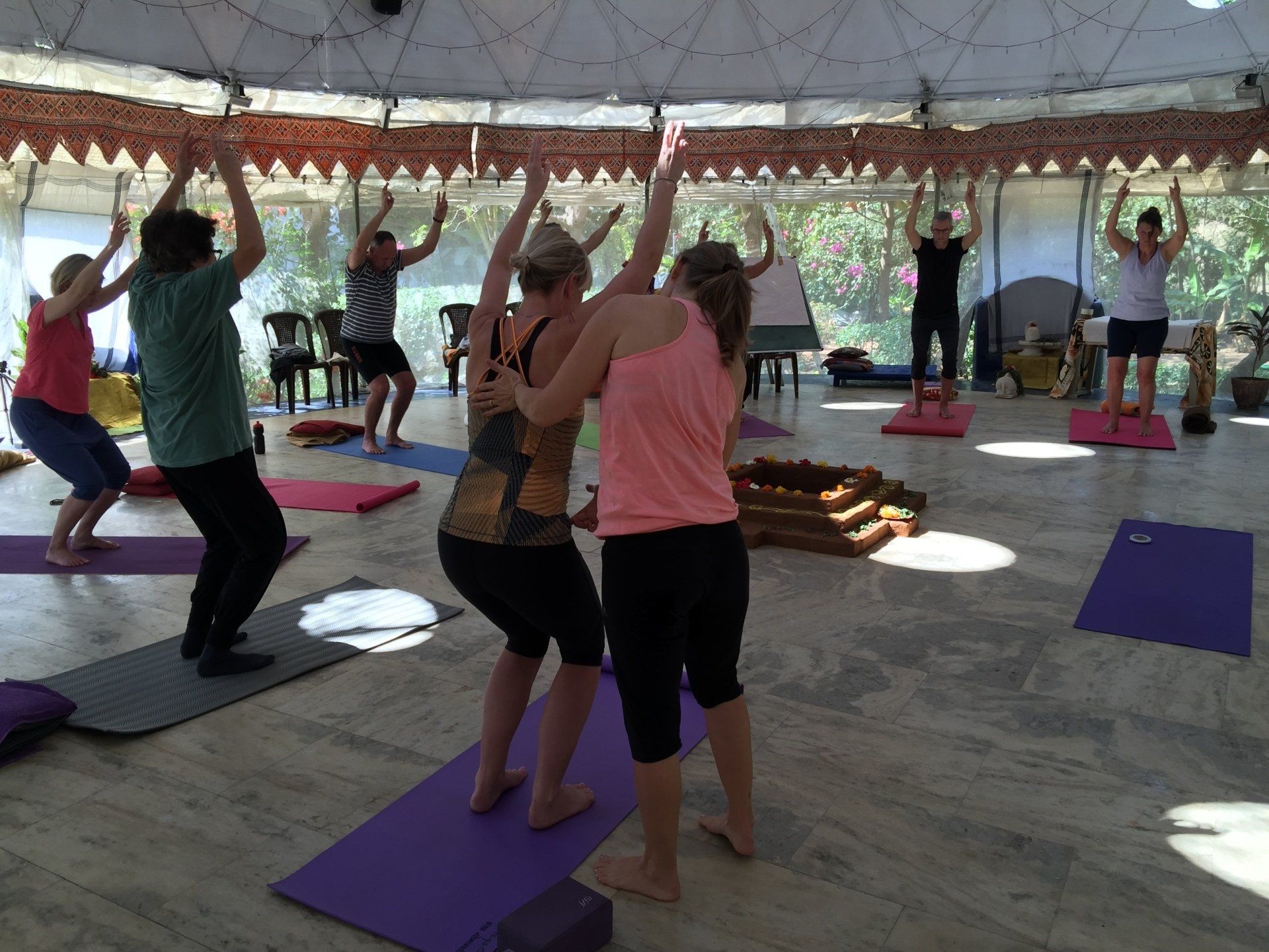 Meditative holding of the asanas with concentration within and conscious breathing is a fixed part of the class.